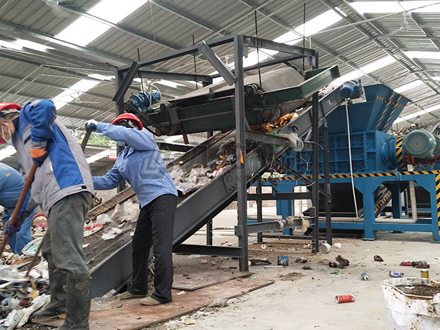 大件垃圾破碎機(jī)可以對(duì)大件沙發(fā),床墊,家具,衣柜等進(jìn)行撕碎與減容。撕碎工藝主要包括撕碎—篩分—除鐵—風(fēng)選等幾道工序。